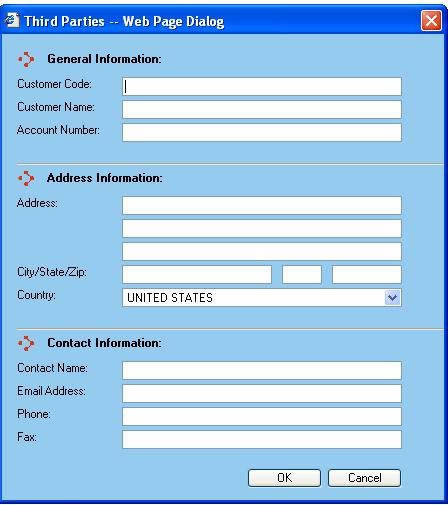 Customer Code - This is the code by which you want the 3rd party account to be referenced in the WorldLink system. Certain functions of WorldLink will present the user with this code as reference to the 3rd party account.