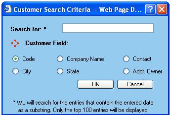 As customer listings can get quite large, this dialog window provides the means to narrow down the resulting list to a manageable amount.