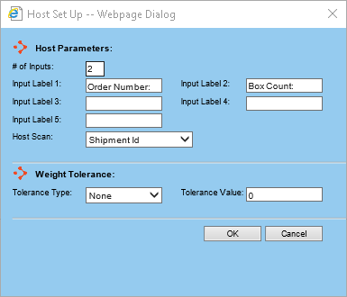 For example, if the tolerance type is set to percentage and the tolerance value is set to 5, then WorldLink will verify that the weight entered is within 5% of the expected weight.