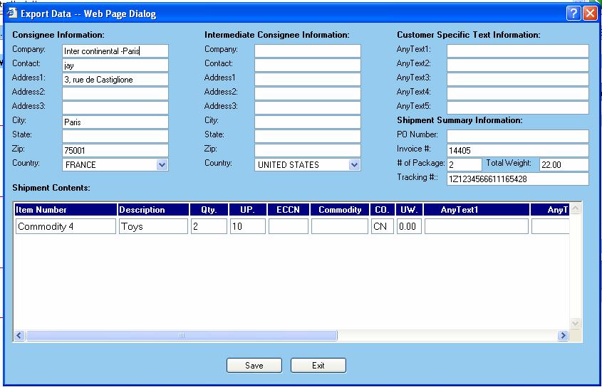 Remember that the data displayed here is in a consolidated format and gets applied to the entire group as a whole, rather than individual shipments or packages. All the details displayed are grouped by an “Item Number” within the entire consolidation group.