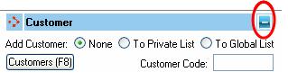 The data on the Process Shipments screen is organized into categories. Each category can be collapsed to hide the data in that section by selecting the minimize icon: