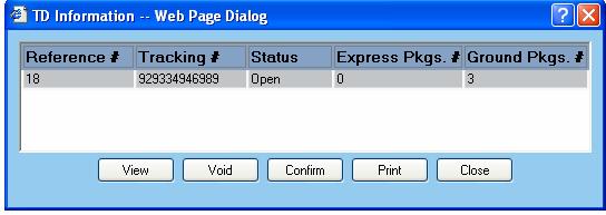 User will confirm the TD shipment. This is not necessarily the ‘close out’ transaction at the end of the day. After this stage, no modifications can be made for the TD shipment but non-TD shipments can continue to be made against the manifest and new TD shipments can be created.