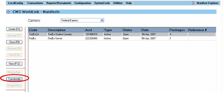 Select the Transborder button to confirm the shipments and then post the manifest.