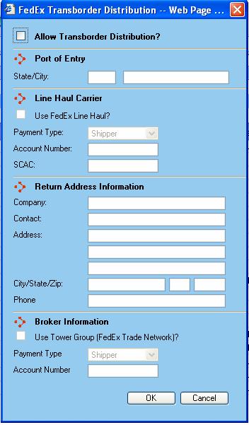 Line Haul Carrier – Select checkbox if using FedEx as the line haul carrier. Enter account number if FedEx line haul carrier.