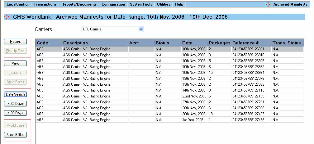 Once a Master Bill of Lading has been posted, it can be viewed and printed by selecting Transactions | Archived Manifests.